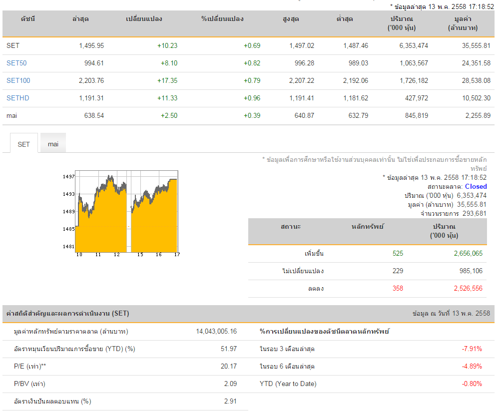 ดร.สันติ กีระนันทน์ รองผู้จัดการ ตลาดหลักทรัพย์แห่งประเทศไทย เปิดเผยว่า MSCI ได้ทบทวนและประกาศรายชื่อหลักทรัพย์ที่ใช้คำนวณดัชนี MSCI เมื่อวันที่ 12 พฤษภาคม 2558 โดยเพิ่มหุ้นไทยรวม 14 หลักทรัพย์ (SET 13 หลักทรัพย์ และ mai 1 หลักทรัพย์)